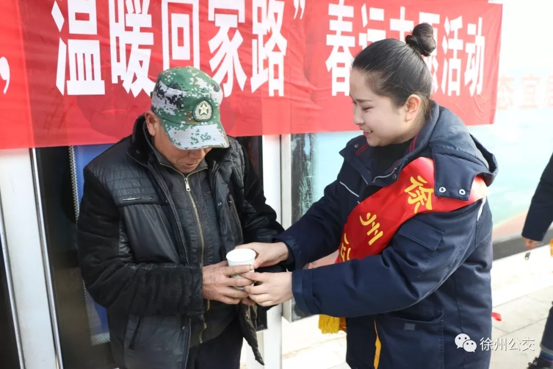 熱情的微笑,真誠的服務(wù),讓歸家的乘客感受到了徐州的溫暖。其中,兆通公司組織志愿者走上公交車,裝扮年味車廂;順通公司提早準(zhǔn)備了50余份“?!弊执盎ê蜔艋\,免費(fèi)送給市民和準(zhǔn)備返鄉(xiāng)的旅客;新城公司、保修公司向乘客宣傳平安春運(yùn)知識(shí),讓乘客走得安全、放心。