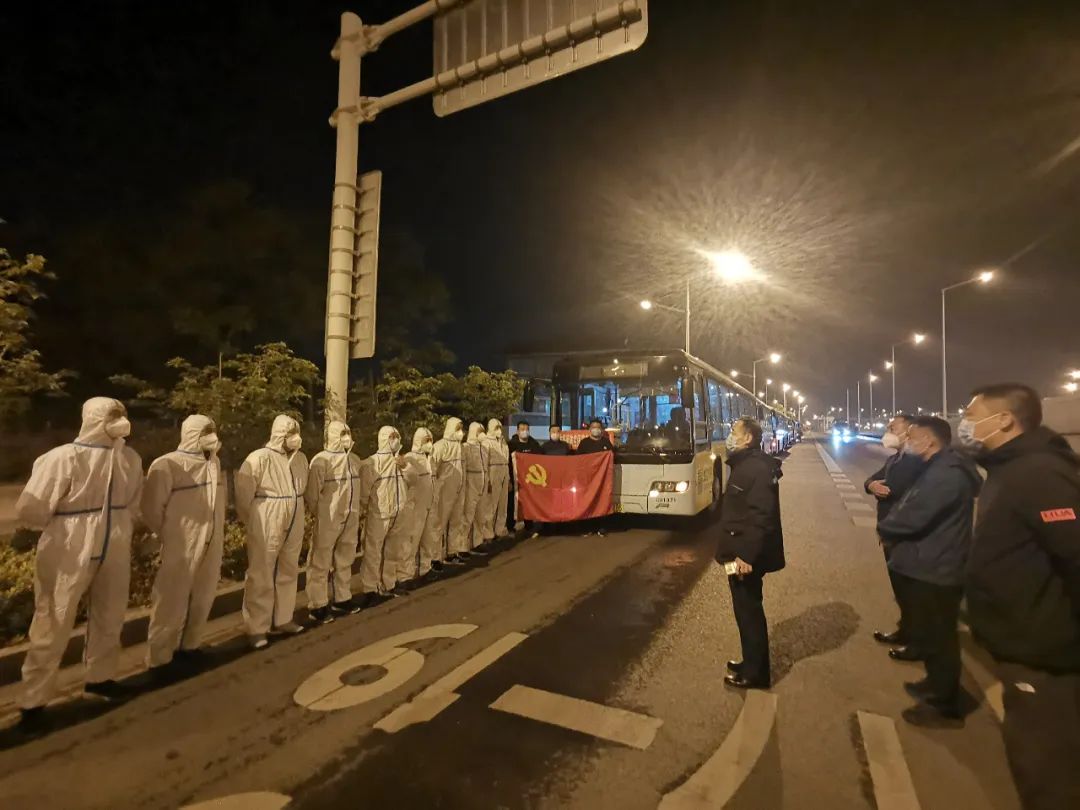 4月22日1:10分集結(jié)完畢。出行前,交控公交集團黨委書記、董事長高守江來到隊員們中間,滿懷激情地激勵大家:交控公交要承擔(dān)起國企責(zé)任,堅決服從全市疫情大局,全力支持睢寧疫情防控工作。大家要團結(jié)一心,到崗以后要服從大局、聽從指揮、遵守紀律、忠于職守,要切實加強安全防護。大家處在疫情防控的最前沿、第一線,既要發(fā)揚越是艱險越向前的斗爭精神,也要強化自我防護意識,嚴格按規(guī)程開展工作,全體公交人都期盼你們早日凱旋歸來、平安歸來。