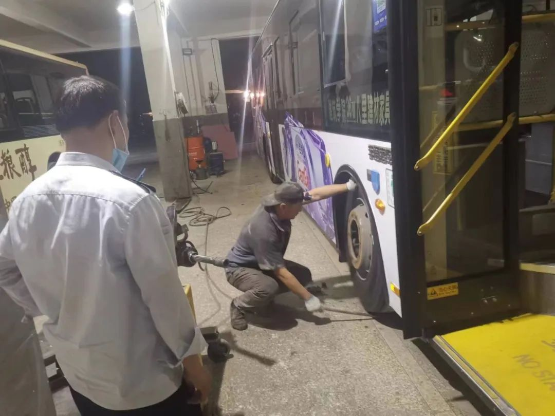 檢修人員在車(chē)輛回場(chǎng)后,逐輛進(jìn)行檢修和調(diào)試,確保第二天能順利出車(chē)。而駕駛員宗浩一絲不茍地做著消毒工作,雖然下班收車(chē)了,但現(xiàn)在是國(guó)慶節(jié)假期的特殊時(shí)期,而且疫情還沒(méi)有結(jié)束,如果公交車(chē)的消毒沒(méi)做好,那就是對(duì)乘客不負(fù)責(zé)。