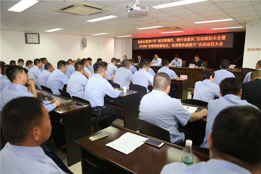5月10日上午,有限公司召開“2017‘創(chuàng)文明城市、樹行業(yè)新風(fēng)’總結(jié)表彰暨2018‘文明創(chuàng)建新起點(diǎn),優(yōu)質(zhì)服務(wù)新提升’活動(dòng)動(dòng)員大會(huì)”,主要任務(wù)是對(duì)全公司文明城市創(chuàng)建常態(tài)長(zhǎng)效工作進(jìn)行部署,動(dòng)員全體干部員工認(rèn)清形勢(shì)、再鼓干勁,開啟文明創(chuàng)建新征程,再創(chuàng)優(yōu)質(zhì)服務(wù)新提升。公司董事長(zhǎng)、總經(jīng)理杜紅軍,工會(huì)主席竇同銀,調(diào)研員張同剛、祖伯鴻,相關(guān)部室負(fù)責(zé)人,營(yíng)運(yùn)公司經(jīng)理、書記、服務(wù)主管,車隊(duì)長(zhǎng)、先進(jìn)個(gè)人代表等87人參加了會(huì)議。