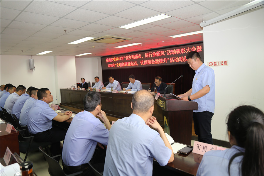 調(diào)研員祖伯鴻宣讀了《關(guān)于表彰2017年度“創(chuàng)文明城市、樹行業(yè)新風(fēng)”先進(jìn)集體和先進(jìn)個(gè)人的決定》。大會(huì)對(duì)獲得榮譽(yù)的先進(jìn)集體和個(gè)人代表進(jìn)行了頒獎(jiǎng)。新區(qū)公司黨支部書記李強(qiáng)、順通公司三車隊(duì)隊(duì)長(zhǎng)鹿小可、11路駕駛員曹瑞國(guó)等三位同志作了大會(huì)交流發(fā)言。