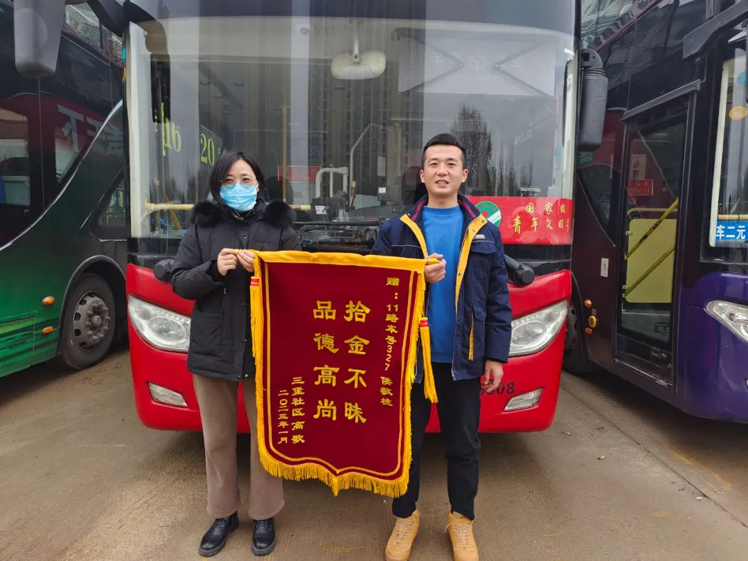1月19日,失主郭女士通過公交集團熱線電話聯(lián)系到車隊管理人員,經(jīng)過車隊的查詢落實后,郭女士與工作人員約好時間前來取回失物。1月20日,郭女士送來了一面錦旗錦旗,并撥打了熱線電話12345表揚駕駛員王怡拾金不昧的精神。王怡熱心助人的行為充分體現(xiàn)了徐州公交駕駛員高尚的道德品質(zhì),他用實際行動體現(xiàn)了 “向善、向美、向上”的價值追求,在平凡的崗位上傳遞公交正能量。